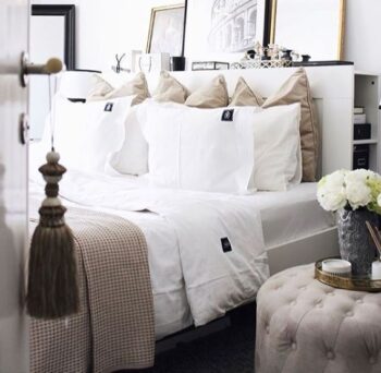 Bedford bäddset i 100% bomull är vår lyxigaste kvalitet. En extra sval och mjuk bomulls satin med 300 trådar. Om du vill skapa en neutral hotellkänsla i ditt sovrum är Bedford helt klart något för dig. Satin kvalitet karaktäriseras av att tygets yta är lite glansig och ger ett exklusivt intryck till ditt sovrum. Vid tillverkningen används endast det bästa och mest långfibriga bomullsgarnet som är certifierat med OEKO-TEX 100 Standard (Klass 1). Örngottet har en detaljerad vinge med tre broderade linjer i kontrastfärg, medan påslakanet har samma linjer broderat i horisontell riktning över främre delen av toppen. Innehåller ett påslakan 150×210 cm och ett örngott 50×60 cm.