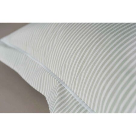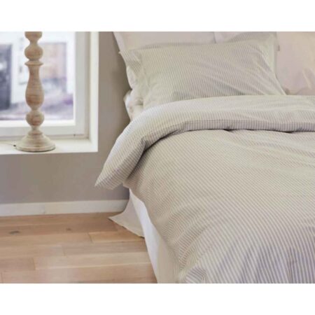Klassiskt randigt bäddset skräddarsytt i Portugal. Nantucket bäddset i percale ger en krispig och sval känsla mot din hud genom sin trådtäthet på 205 trådar. Vid tillverkningen används endast det bästa och mest långfibriga bomullsgarnet som är certifierat med OEKO-TEX 100 Standard (Klass 1)